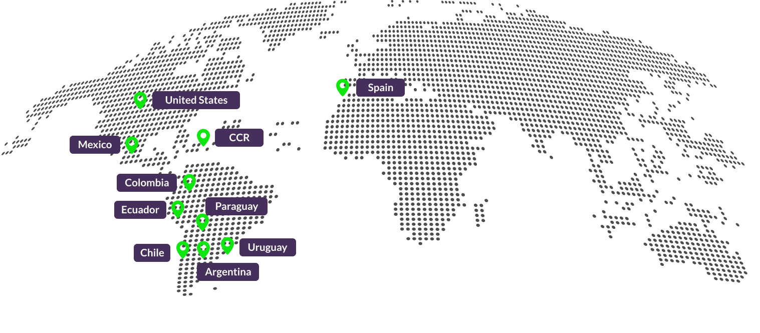 Since 2007, we have helped companies in Mexico, Argentina, Central America and the Caribbean, Chile, Colombia, Ecuador, Spain, the United States, Paraguay, and Uruguay evolve their businesses.